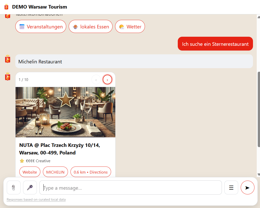The demo's for WhatsApp, LINE, Telegram and WeChat will first require to enter the city to search from.